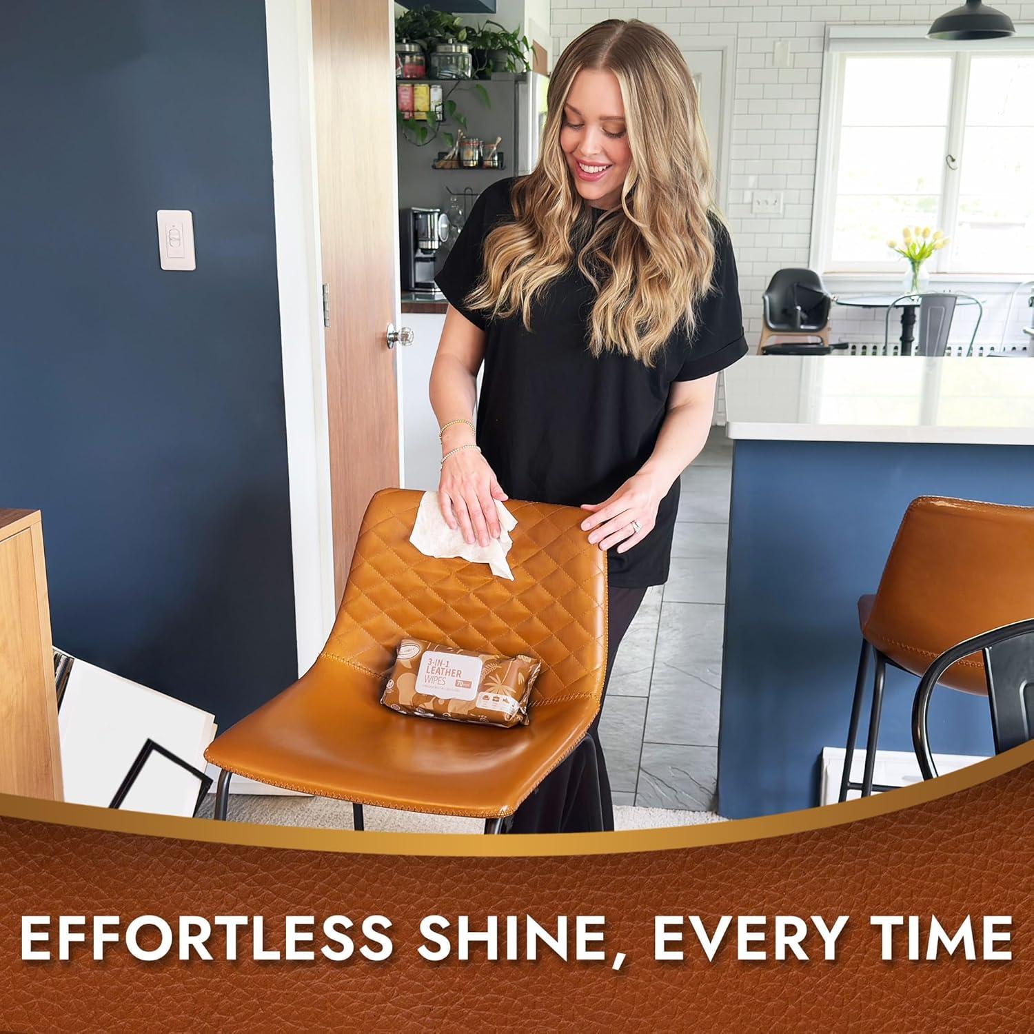 8″ x 10″ Extra Large Wipes: Heavy-duty wet leather cleaning wipes designed for both home and car interiors. Our strongest and largest wipes—perfect for cleaning leather seats and other surfaces.