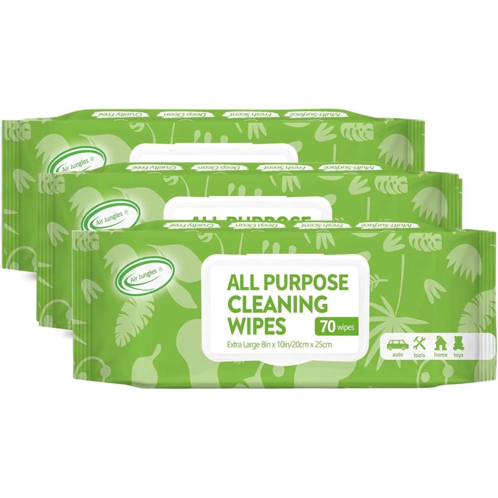 Air Jungles All Purpose Car and Home Cleaning Wipes 70 Count, Extra Large 8" x 10" for Car Interior, Household Appliance, Furniture, Gym Equipment, Table Chair, for Cafeteria School Office(70 Count (Pack of 3))