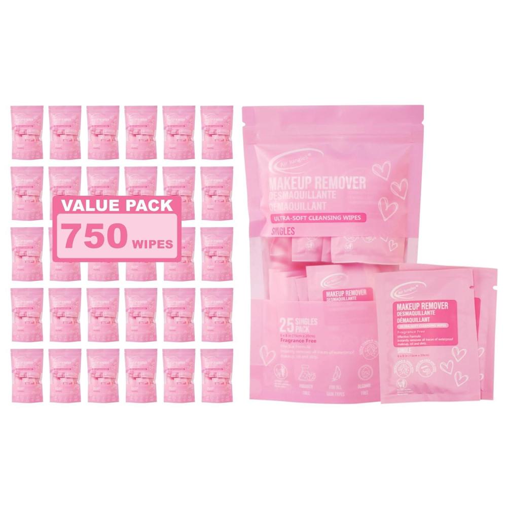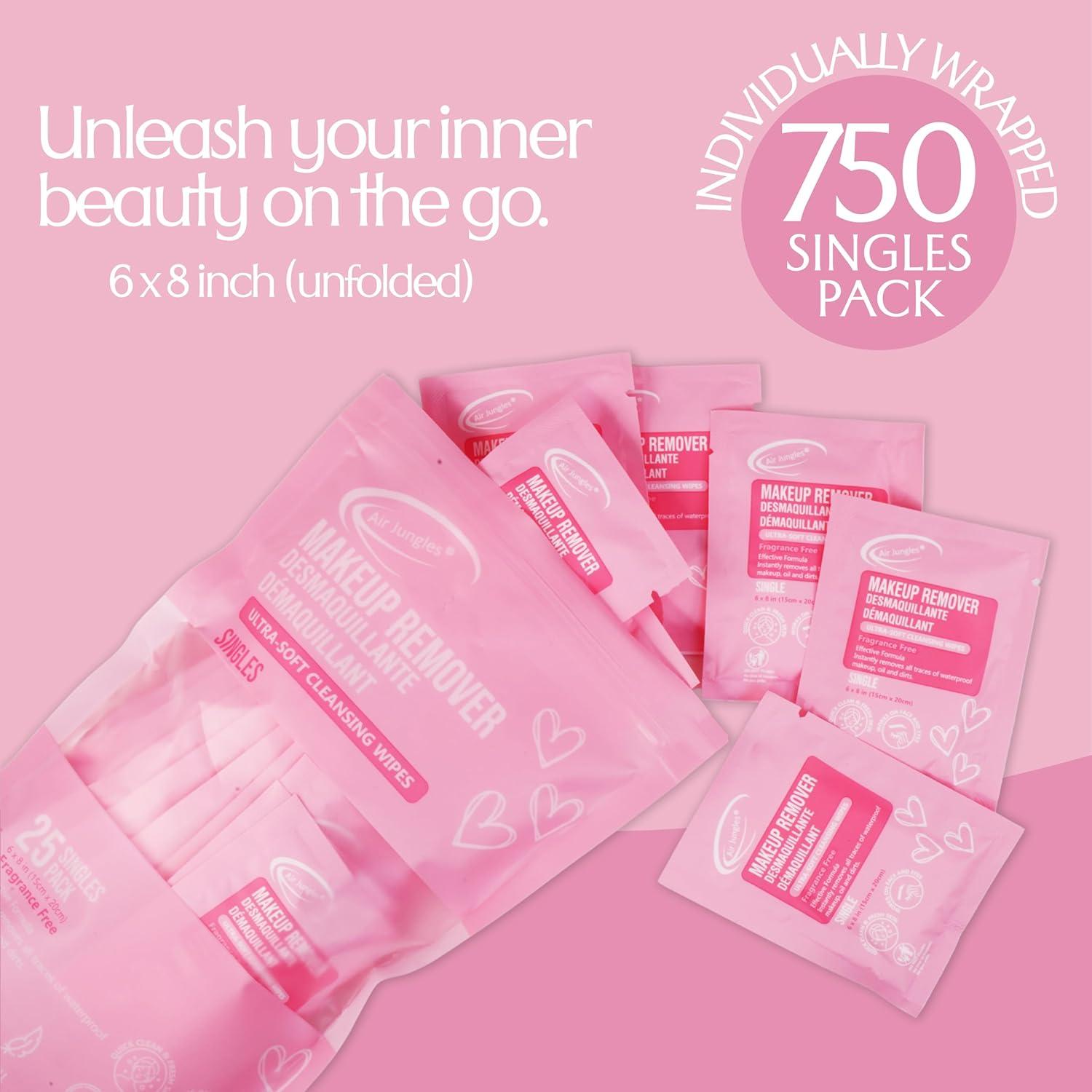 Air Jungles Makeup Remover Wipes Singles 25 Count – Extra Large 6" x 8", Fragrance-Free, Alcohol-Free, Ultra Soft Makeup Cleaning Wipe for Travel, Goodie Bags, and Daily Use(25 Count (Pack of 30))