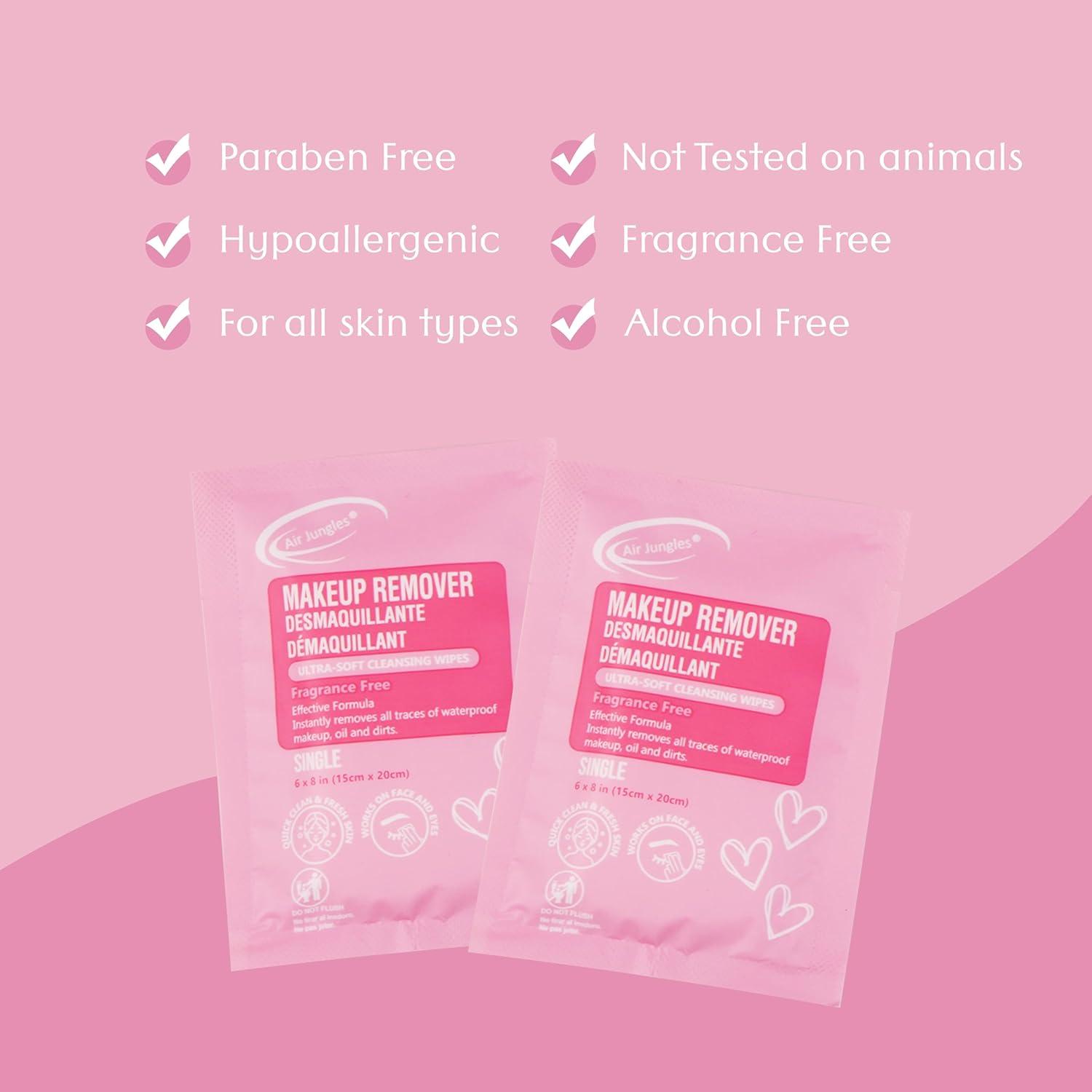 Air Jungles Makeup Remover Wipes Singles 25 Count – Extra Large 6″ x 8″, Fragrance-Free, Alcohol-Free, Ultra Soft Makeup Cleaning Wipe for Travel, Goodie Bags, and Daily Use(25 Count (Pack of 3))